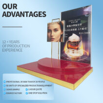 • Custom High End Red Base Stepped Cosmetics Display Fashion Skincare Display Rack with LED Background for Retail Beauty showcase