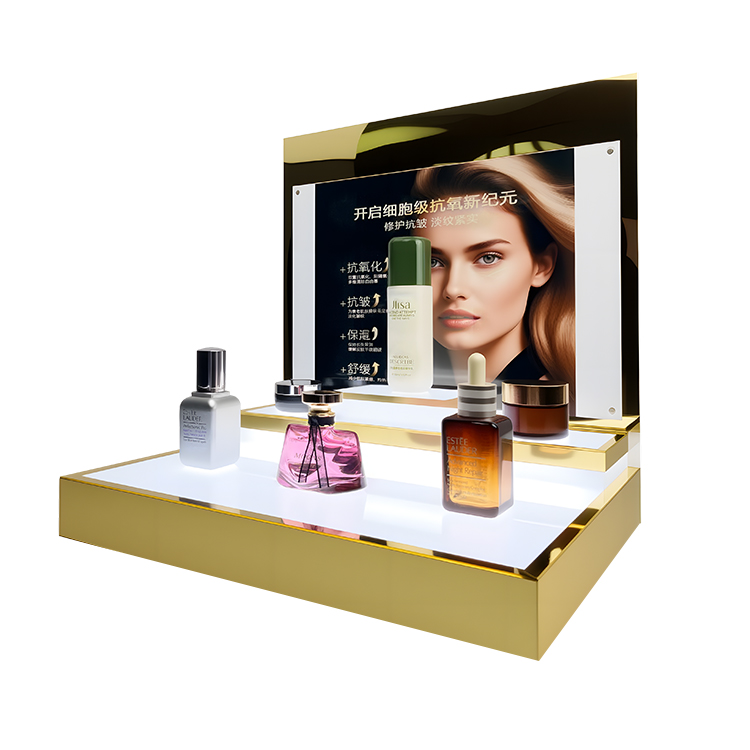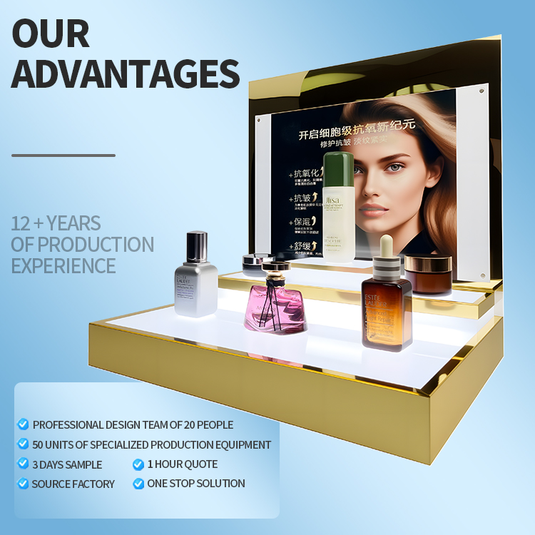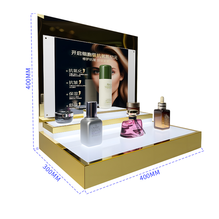Custom High End LED Cosmetic Display Rack with Two-tier Skincare Product Display Rack and Professional Makeup Display Stand