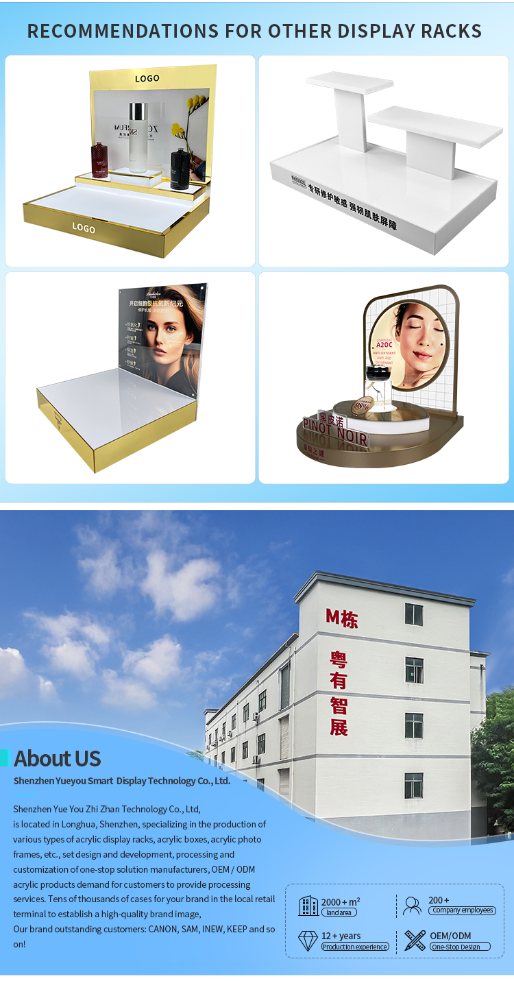 Custom Blue Acrylic Display Stylish Acrylic Perfume Display Rack Skincare Display Holder with LED Lights for Retail Stores