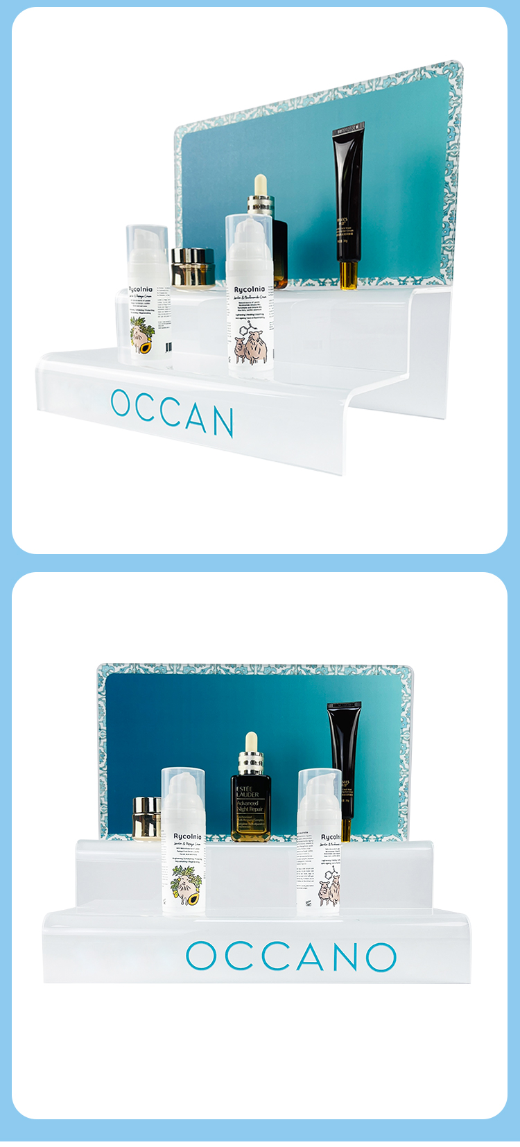 OEM ODM Acrylic Cosmetics Display Rack Countertop Makeup Display Stand Fashion Two-tier Acrylic Cosmetics Display Rack