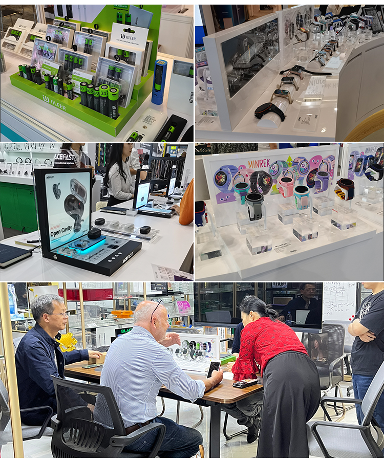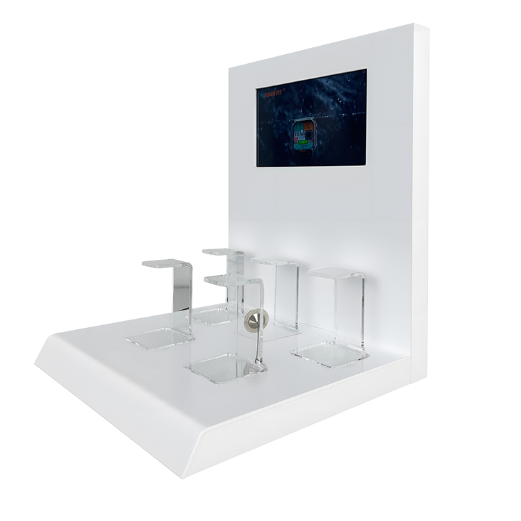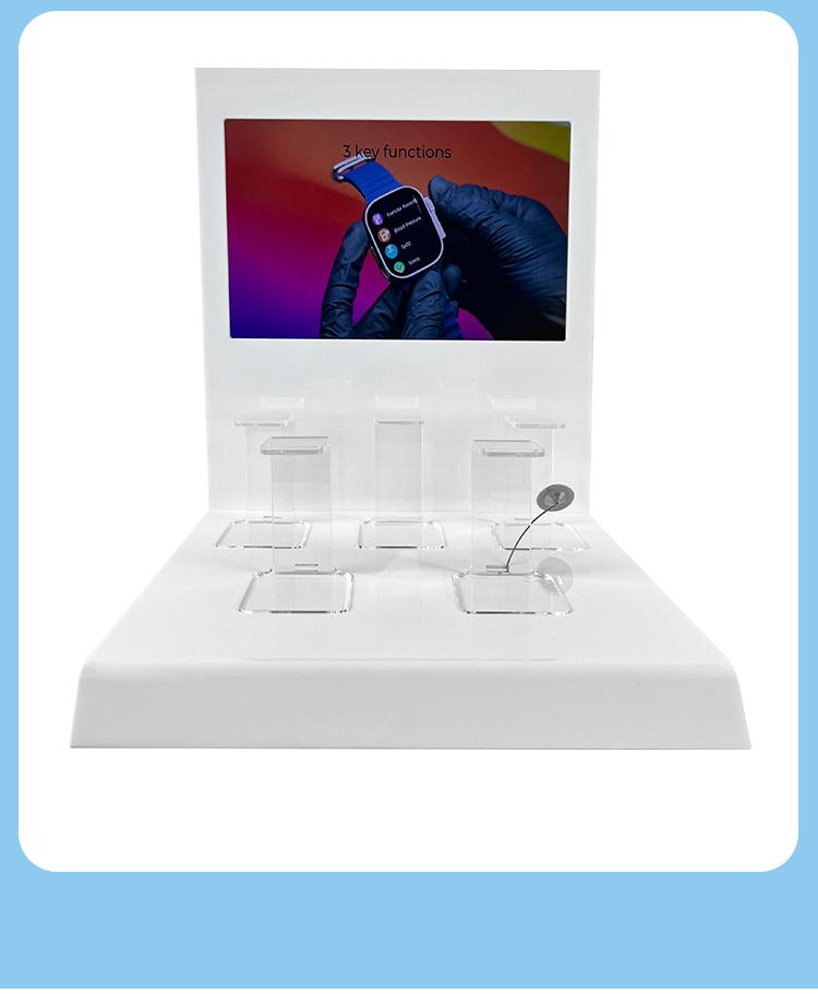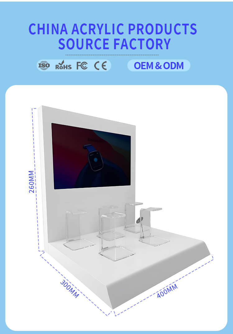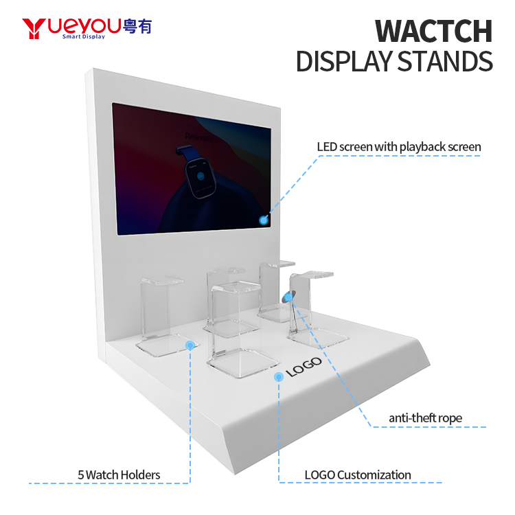 Customized Watch Display Rack Counter Acrylic Electronic Product Stands Equipped with LED Display Screen with 5 Watch C-stands