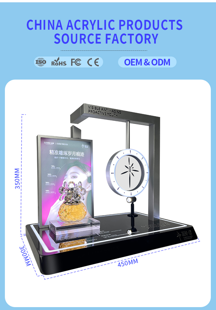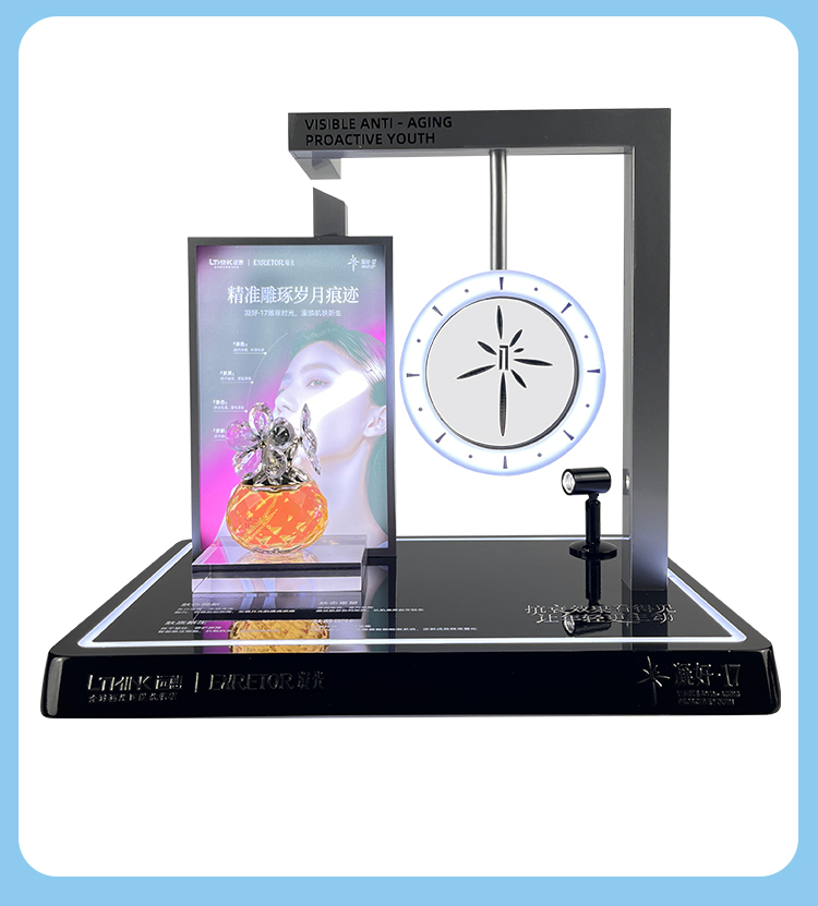 Custom Free Design Luxury Makeup Display Rack Small Cosmetic Display Holder with Illuminated Base Perfume Exhibition Rack