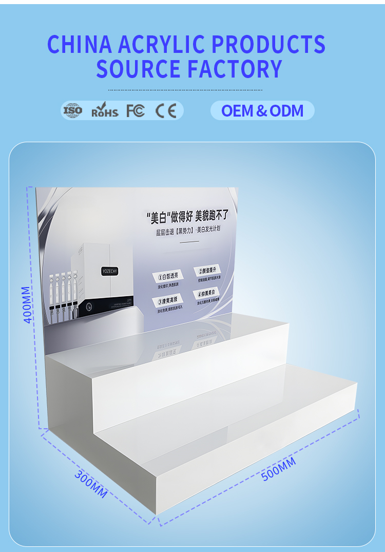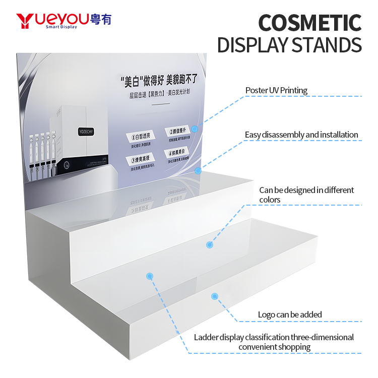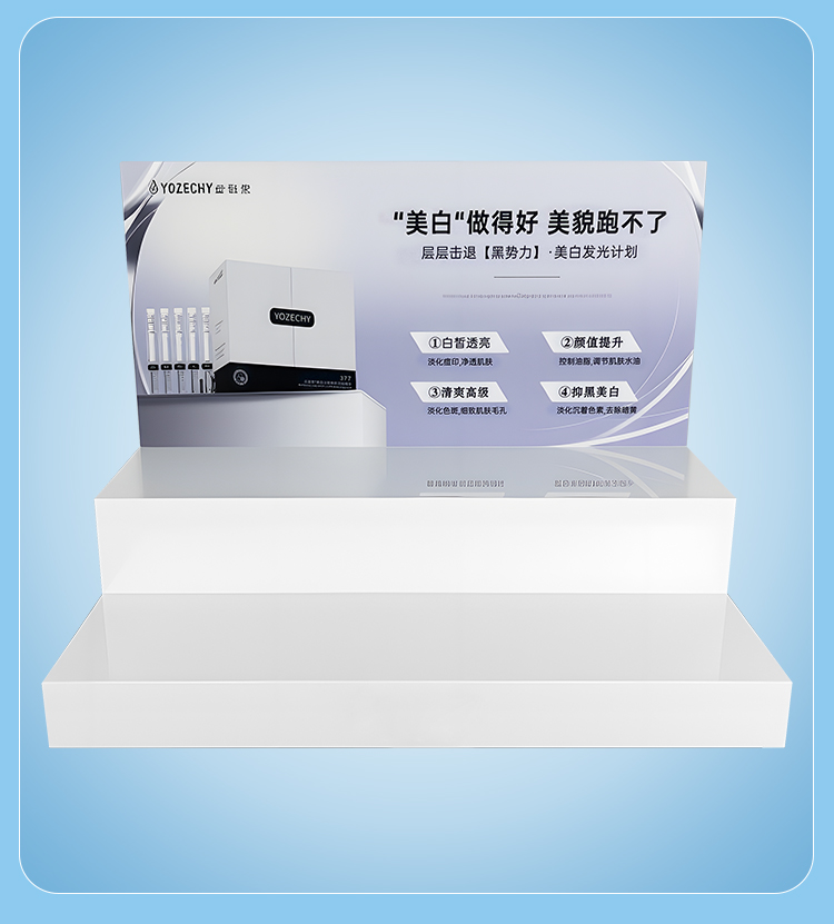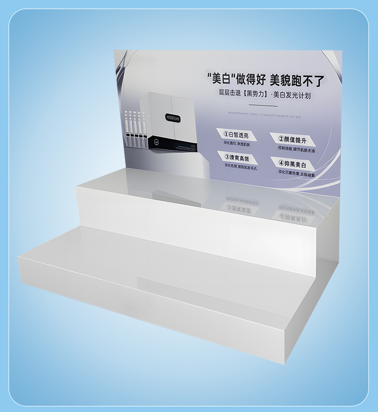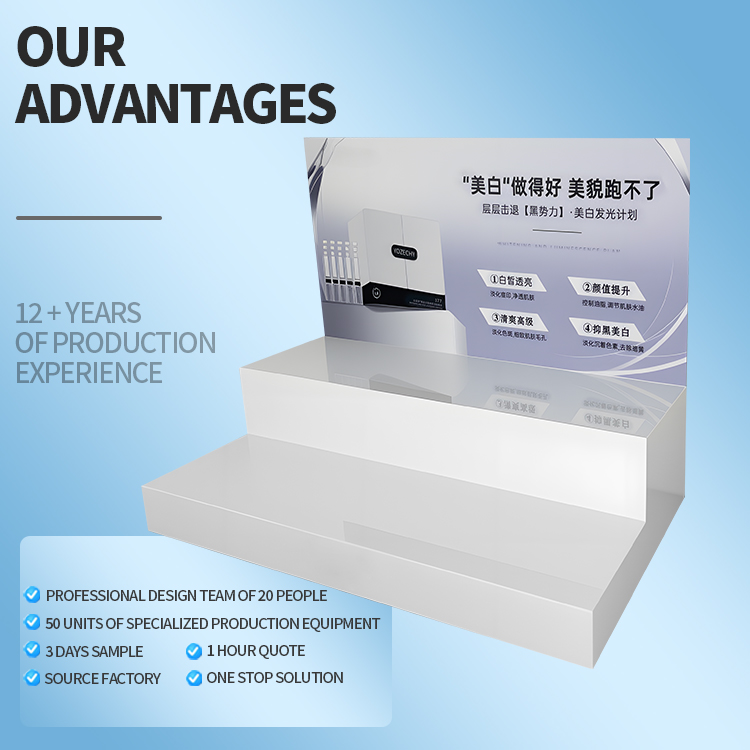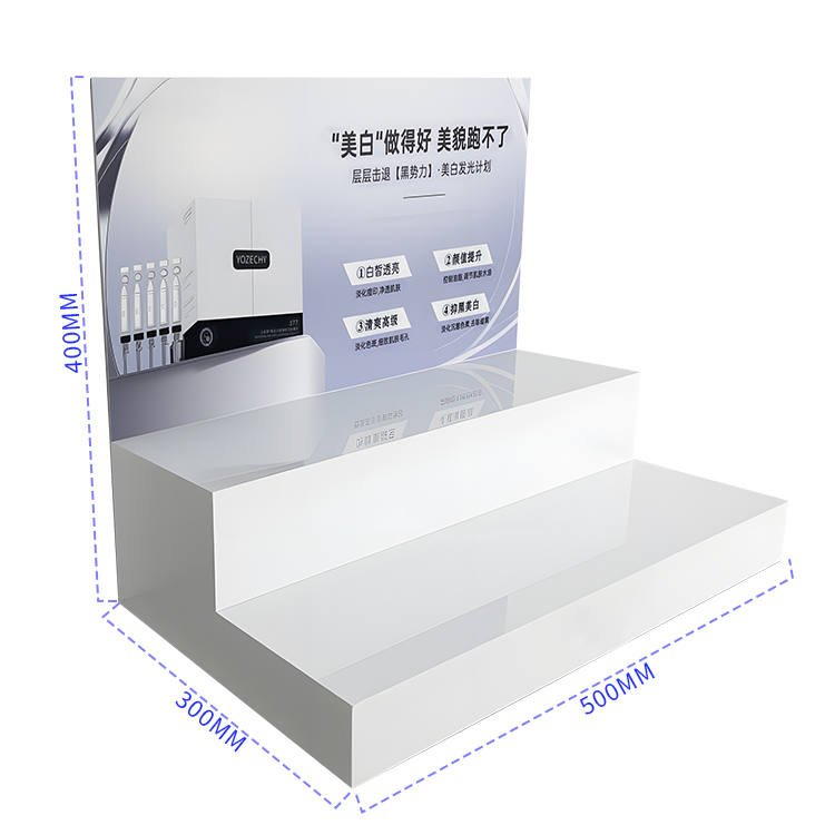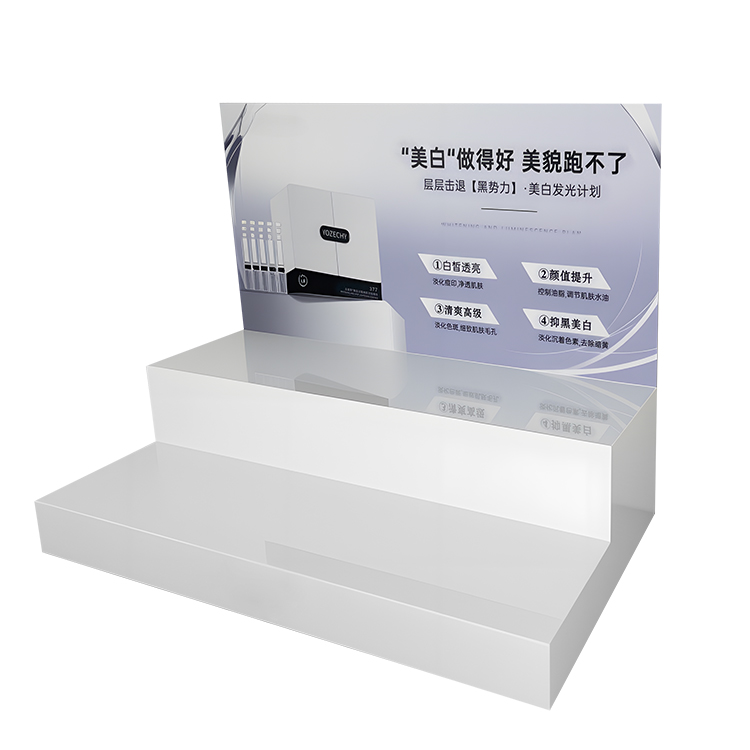 High-quality White Acrylic Modern Display Double-layer Stepped Acrylic Display Rack for Skincare Products
