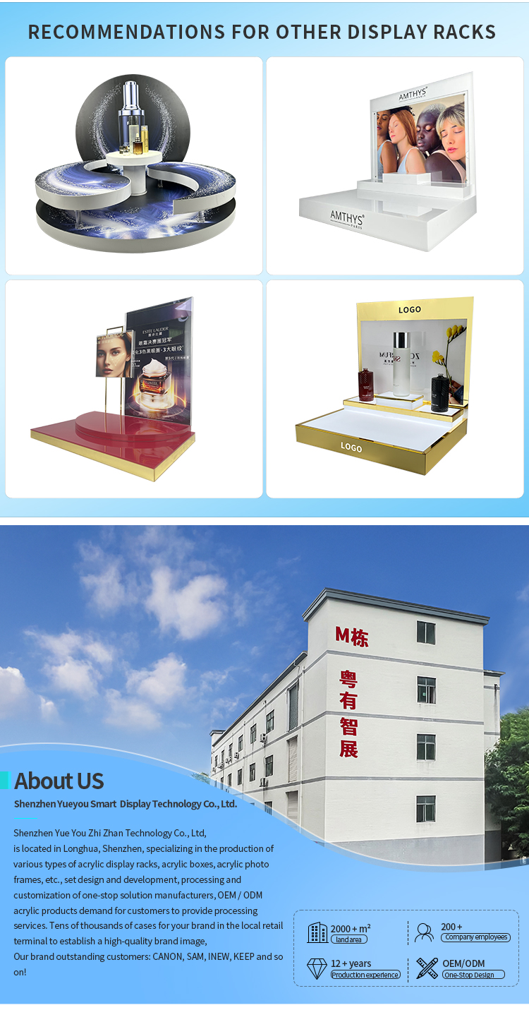 Be the first to review “Custom Unique C Shaped Cosmetics Display Rack High End Color Skincare Product Display Rack Fashionable Cosmetics Display Rack”