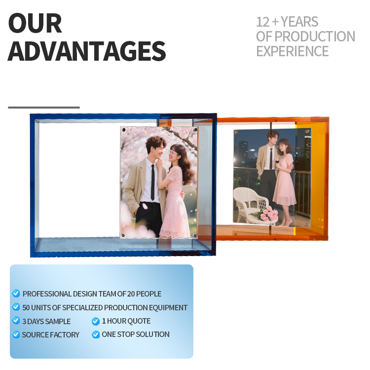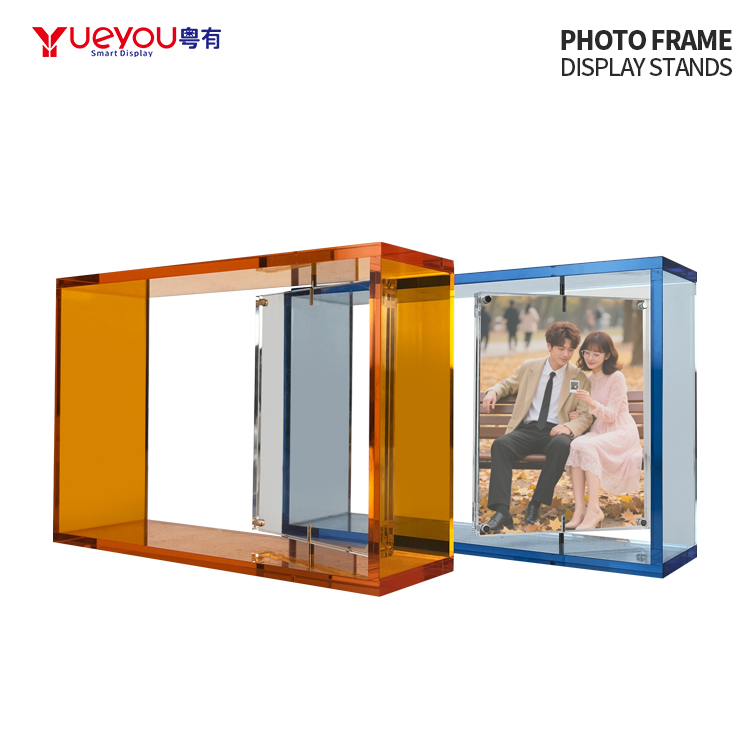 Factory Price Custom Clear Acrylic Block Photo Display Rack with Rotatable Photos Portable Display Stand for Home Decor Item